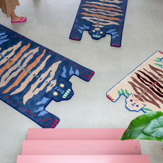 Zwei Tigerköpfe, ein Teppich: Der Soulmates Rug zeigt ein außergewöhnliches Doppelmotiv, inspiriert von tibetischen Traditionen und Fabelwesen. Er steht für Ausgewogenheit und Harmonie – männlich und weiblich, kraftvoll und weich. Ein Teppich mit Symbolkraft, der gleichzeitig als markantes Designobjekt überzeugt.