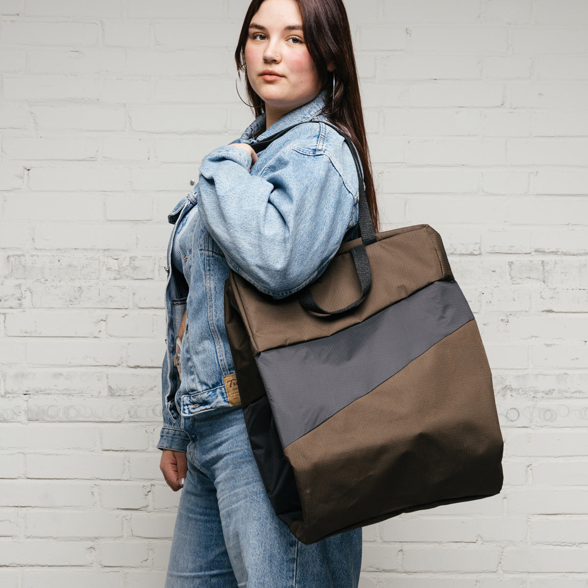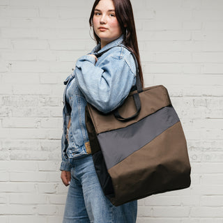 The New Tote Bag: diese Tasche ist für so viel mehr als nur das Nötigste gedacht. Sie ist ein idealer Begleiter für die Arbeit, für Reisen und natürlich für den täglichen Gebrauch. Sie ist aus Susan Bijls typischem strapazierfähigen, wasserdichten Material gefertigt und bietet die perfekte Mischung aus Größe und Funktionalität. Sie ist in zwei Größen erhältlich, die jeweils über ein geräumiges Innenleben, eine Innentasche mit Reißverschluss und ein gepolstertes Laptopfach verfügen. Die New Tote Bag hat Griffe in zwei Längen für bequemes Tragen.