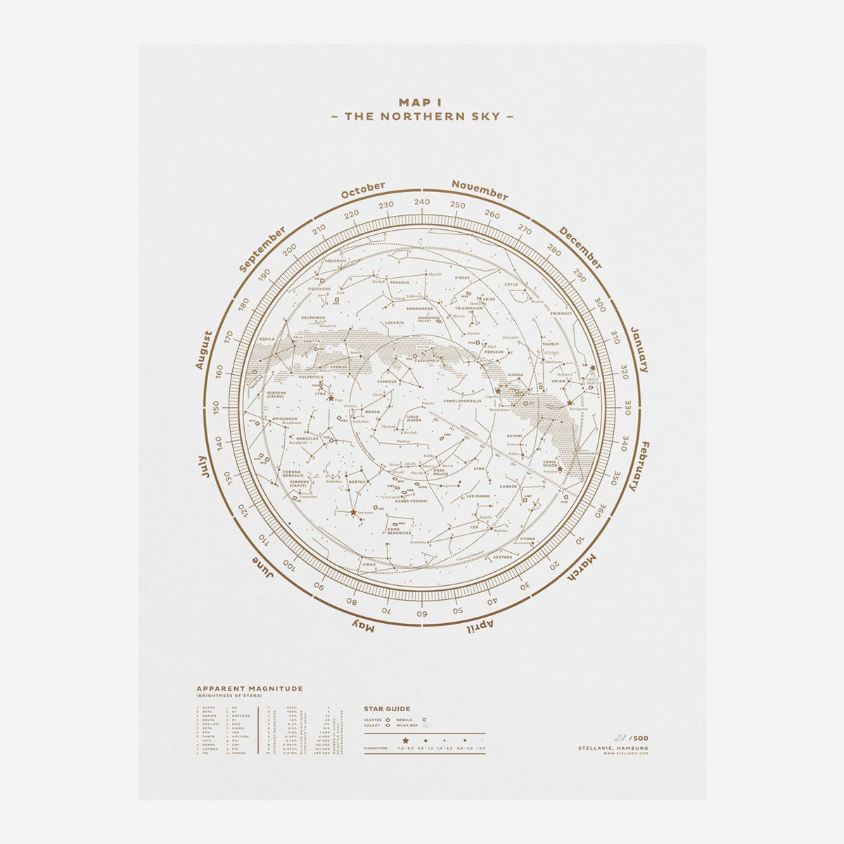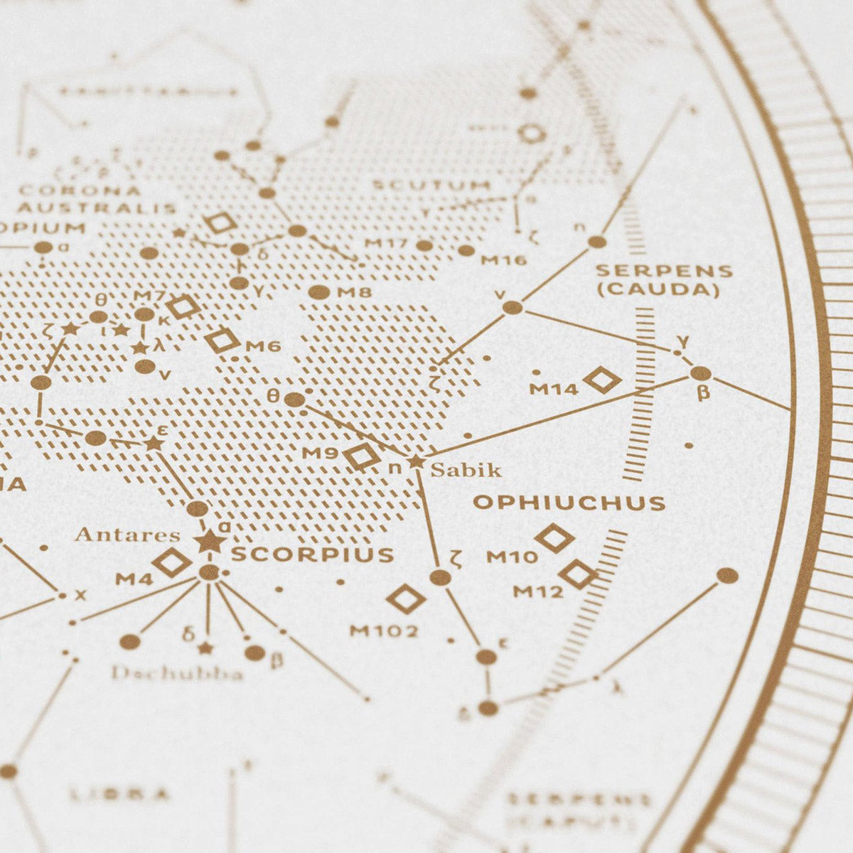 Hol' Dir die Sterne vom Himmel! Stellavie aus Hamburg bringen diese wunderschönen Tafeln der Sternbilder der nördlichen und südlichen Hemisphäre als großformatige Siebdrucke in unsere Wohnzimmer.