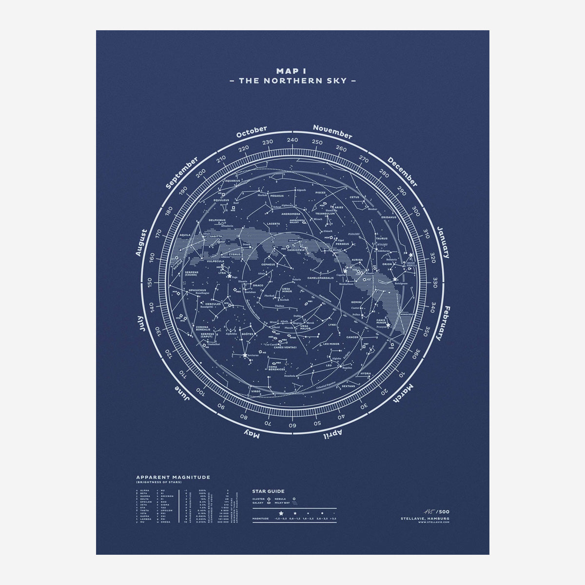 Hol' Dir die Sterne vom Himmel! Stellavie aus Hamburg bringen diese wunderschönen Tafeln der Sternbilder der nördlichen und südlichen Hemisphäre als großformatige Siebdrucke in unsere Wohnzimmer.