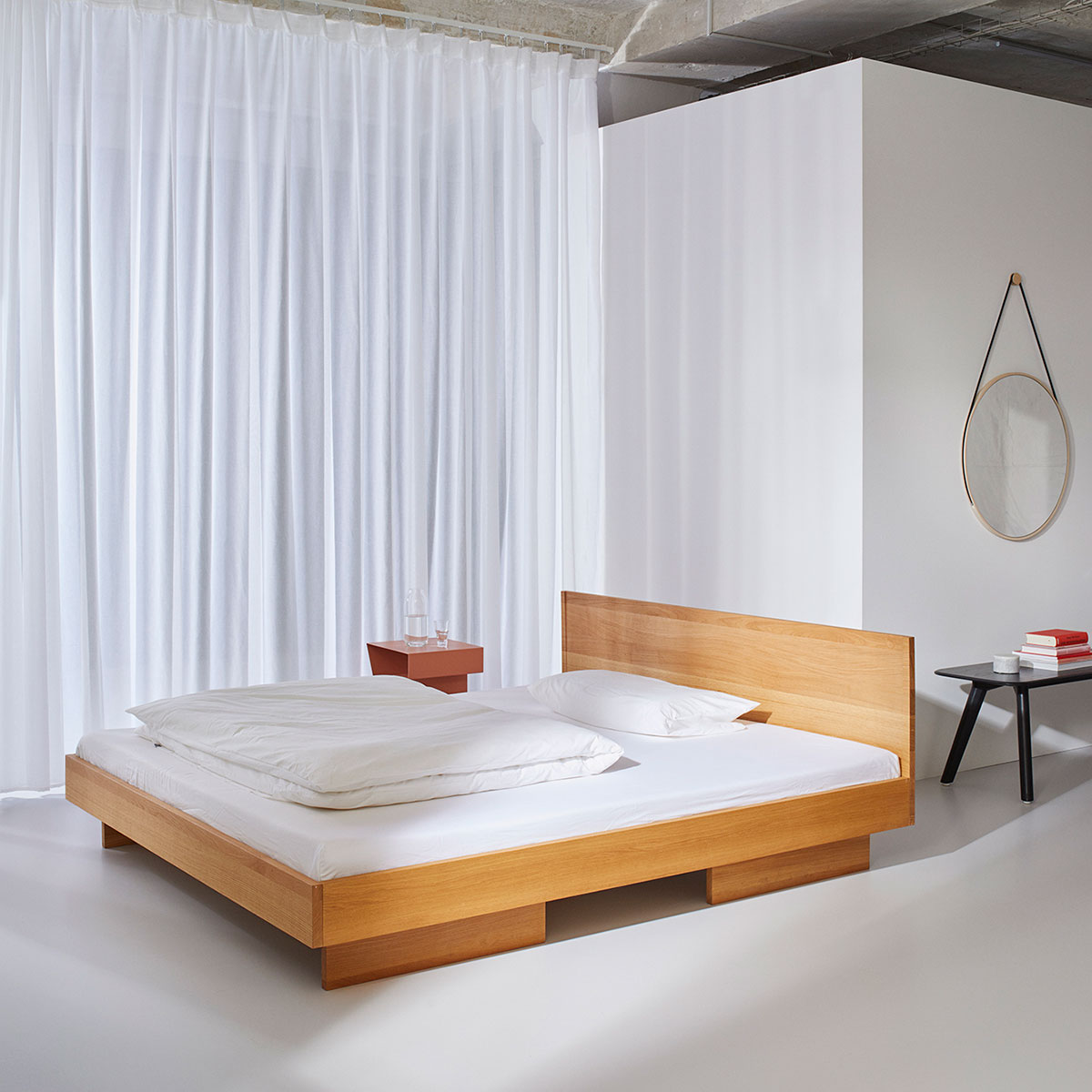Das Bett ist ein Ort, auf den sich jeder freuen sollte. Es ist ein Ort der Sehnsucht und Geborgenheit, an dem man bewusst ruht und Erfahrungen in Erinnerungen verwandelt werden. Das ZIANS Bett ist so ein Ort. Es durchbricht den Alltag und bietet einen intimen Raum der verträumten Gemütlichkeit. Das natürliche Schlafen steht im Zentrum des Entwurfes und findet sich uneingeschränkt in allen Gestaltungsentscheidungen wieder. Das Holz kreiert einen optischen und haptischen Kontrast zur flauschigen Decke und birgt Natürlichkeit in sich. Die klare Form ist das solide Fundament für eine Insel der reinen Sicherheit, die den Sorgen des Alltags ebenso trotzt wie der kalten Nachtluft.